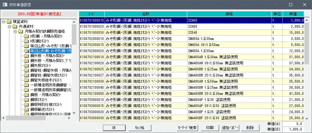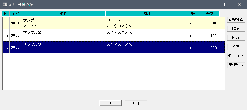 代価表の作成